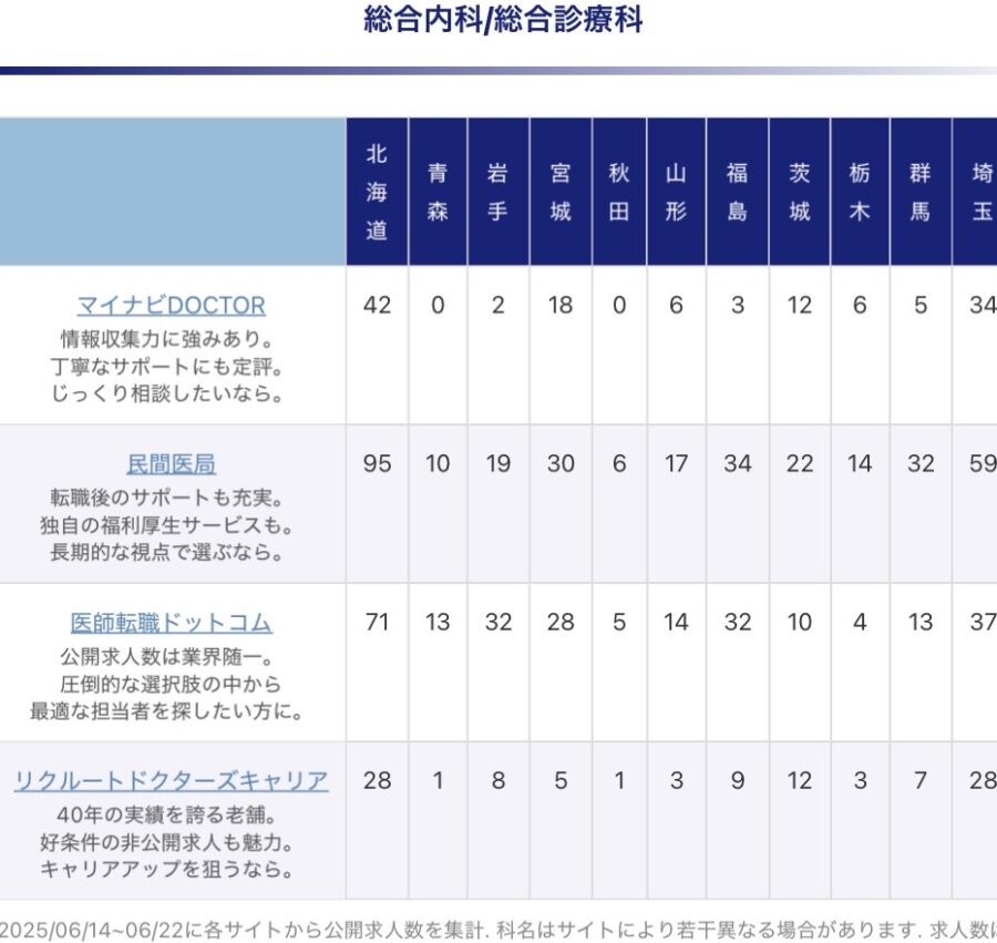 - 診療科によって強みが違う (例:リハビリ科に強いサイト、消化器内科の非公開求人が多いサイト)